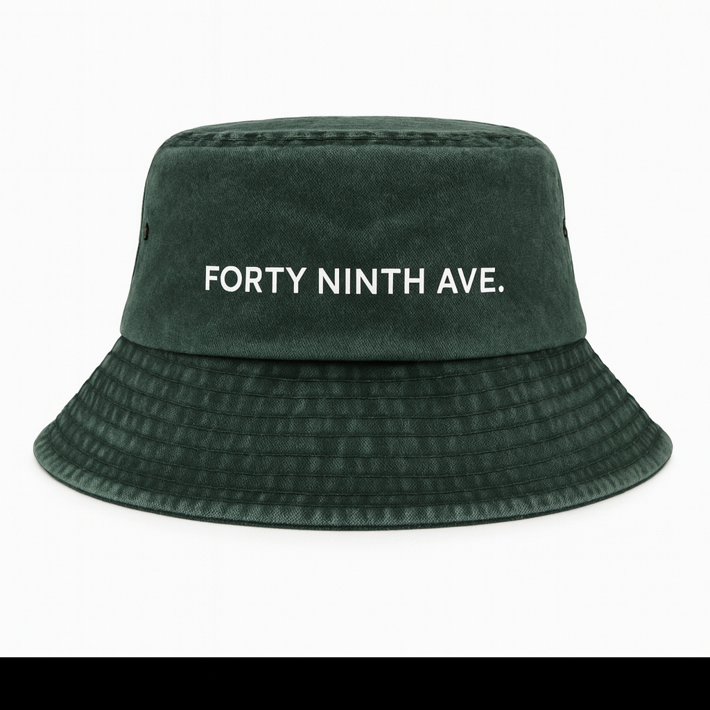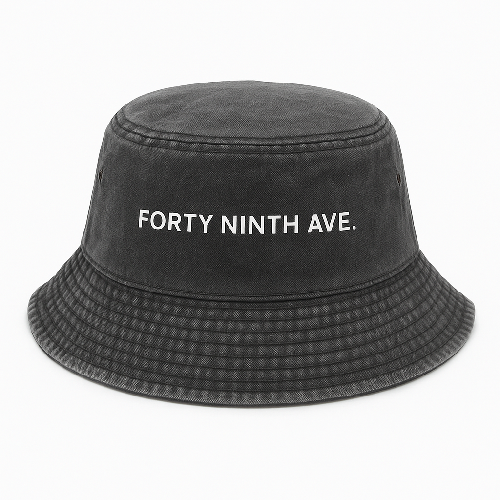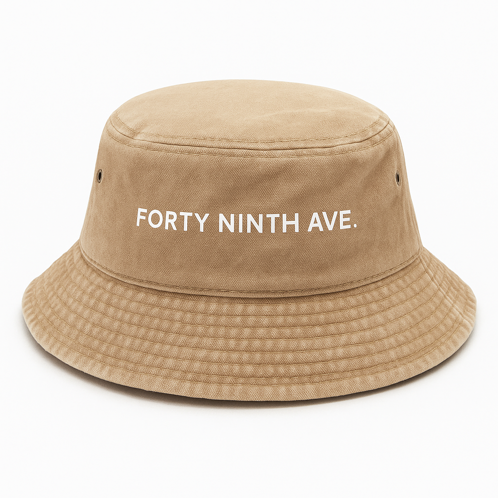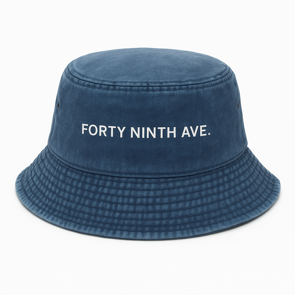 Add a touch of timeless style to your look with the  Vintage Ave. Bucket Hat, designed to complement Forty Ninth Ave's Vintage Collection. Crafted with a unique stone-washed finish, this bucket hat boasts a well-worn, vintage aesthetic. Featuring a secure drawstring for an adjustable fit and "Forty Ninth Ave." embroidery on the front, it’s the perfect blend of style and functionality, ideal for adding a subtle edge to any outfit.