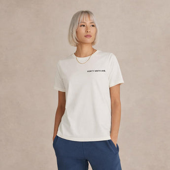 Designed for what lies ahead, this elevated essential builds upon the foundation of everyday wear while introducing a refined sense of direction and possibility. Crafted from 100% American-grown Supima cotton, the tee delivers exceptional softness, durability, and long-lasting color retention.
