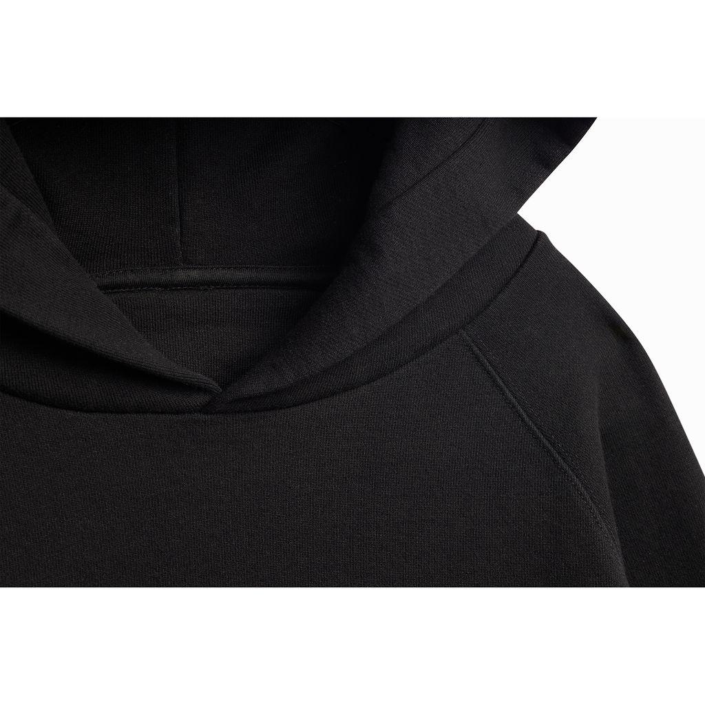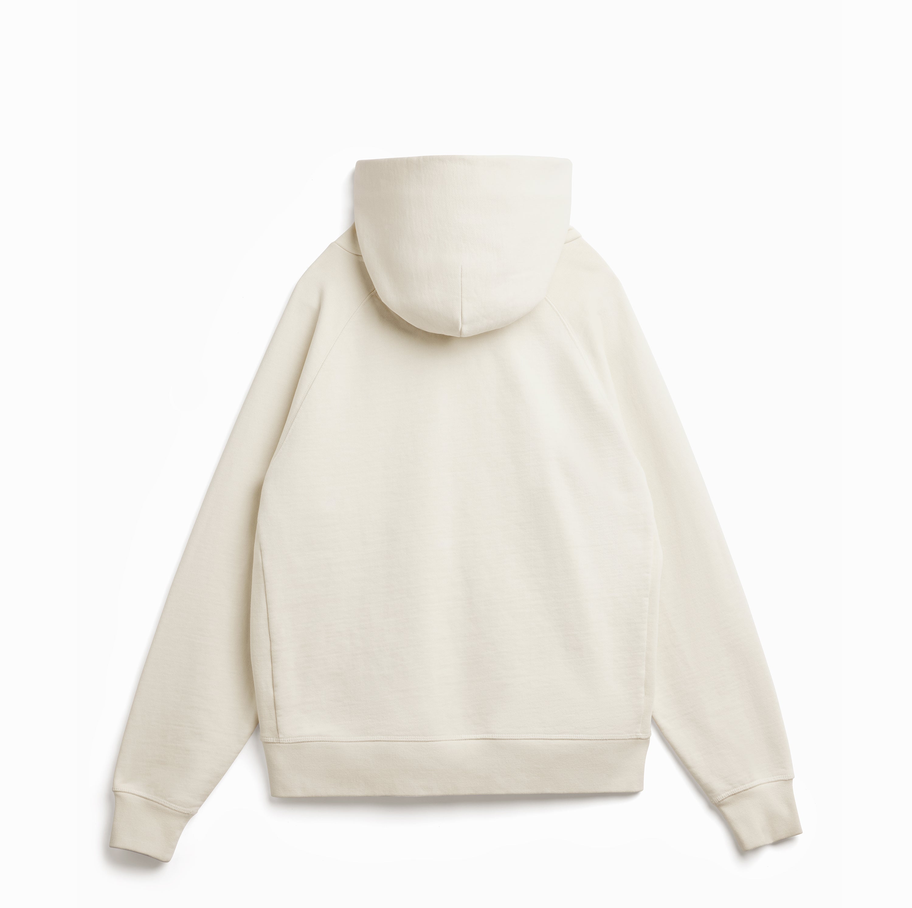 Designed with a relaxed oversized silhouette, the raglan sleeve construction allows for natural mobility while maintaining a clean, elevated drape. The structured hood crosses at the centre front for added stability, eliminating the need for drawstrings while preserving a minimalist aesthetic.
