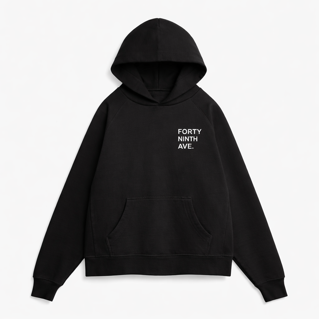 Finished with the signature FORTY NINTH Ave. word mark, the Summit Hoodie represents the peak of the brand’s craftsmanship — combining intentional design, timeless comfort, and quiet luxury.